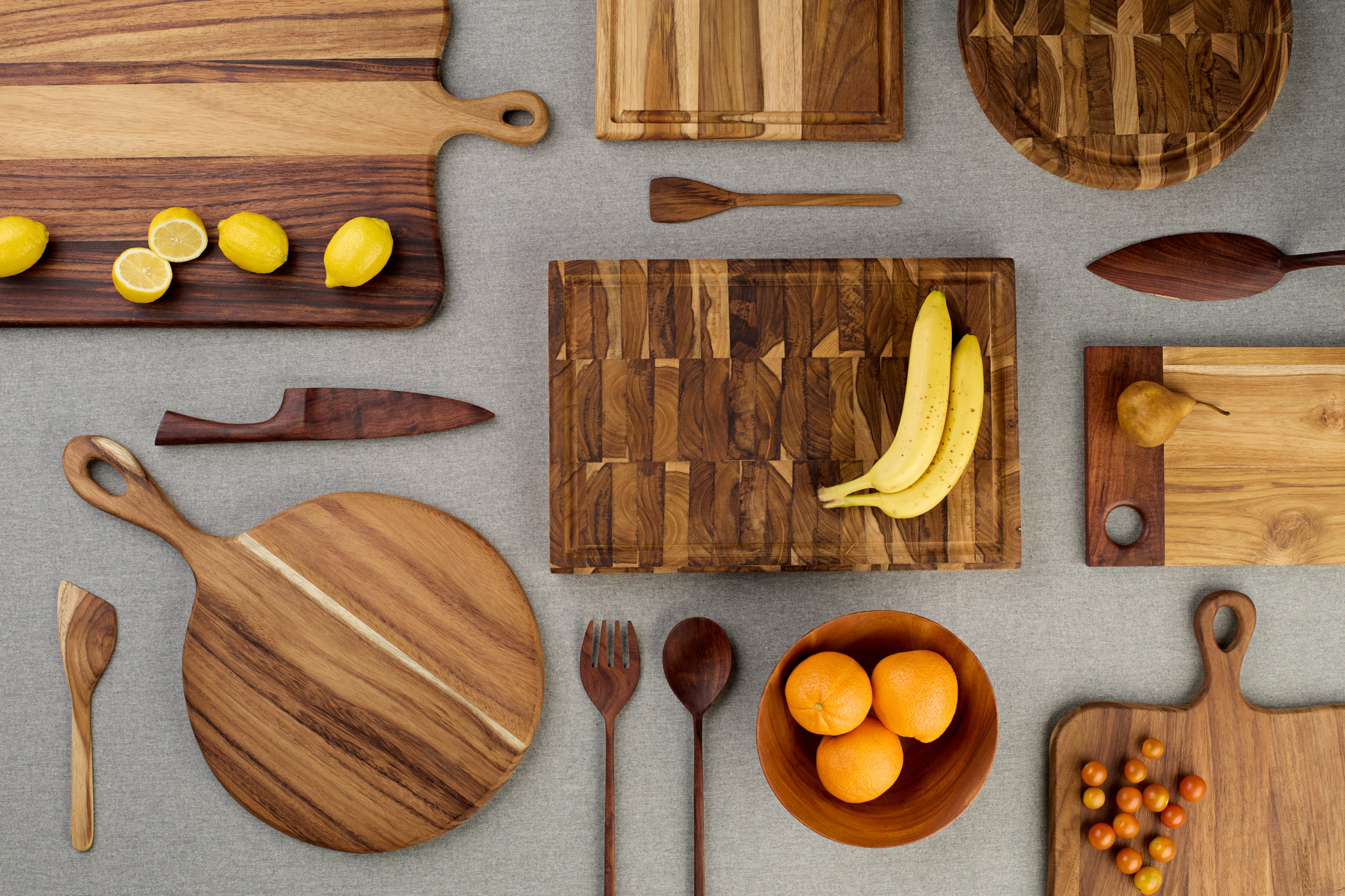 Upgrade your kitchen game with our sustainable teak cutting boards. Handmade by skilled artisans, these boards not only offer durability but also showcase the beautiful natural grains of teak. And with a juice groove, you can say goodbye to messy countertops. Get yours now!